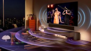 – Công nghệ AI Sound Pro trên tivi OLED evo tạo hệ thống âm thanh vòm ảo 9.1.2 sống động, chất âm tối ưu theo từng thể loại, cho bạn nghe nhạc, xem chương trình thể thao cuốn hút hơn.